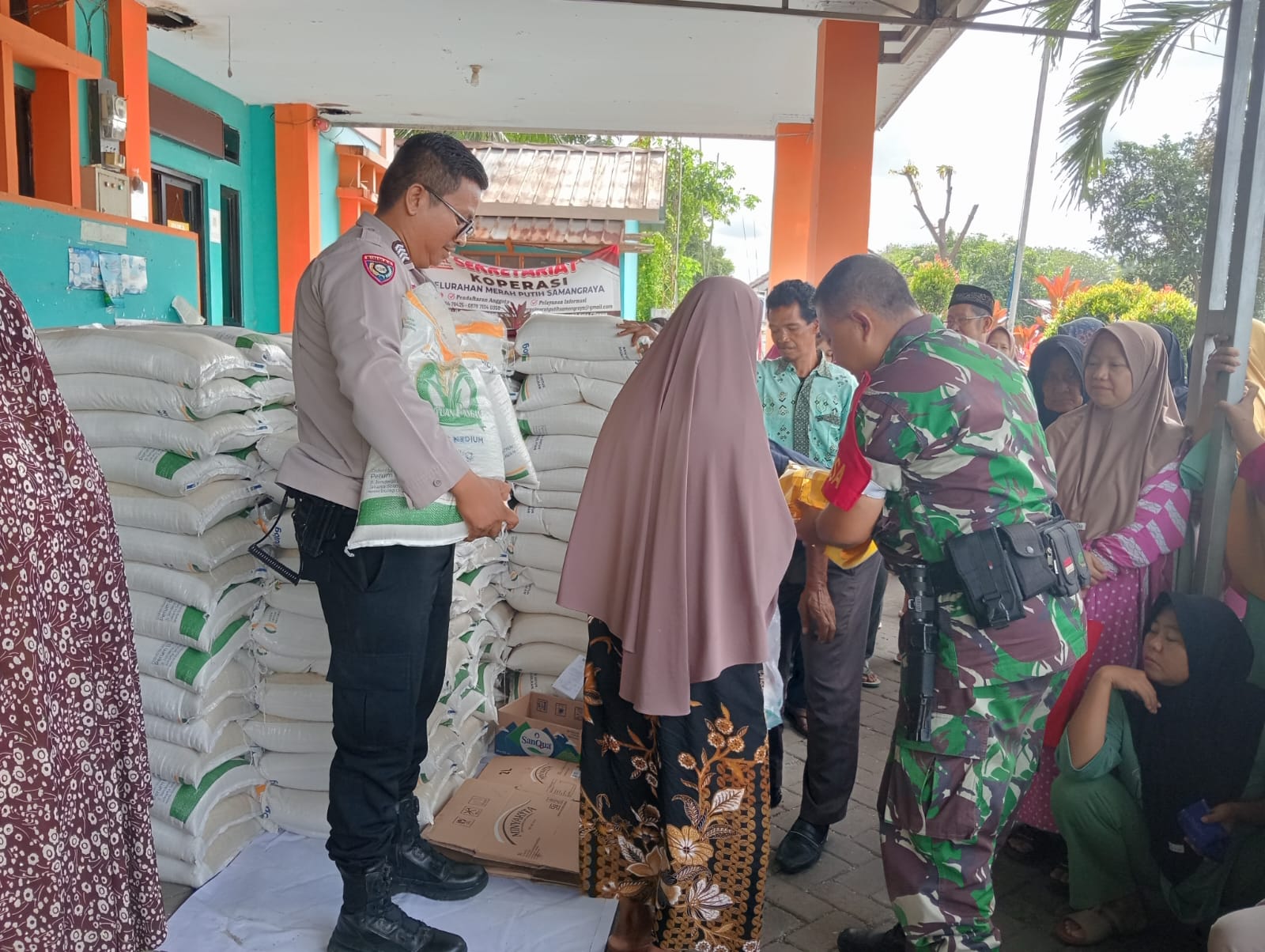 Cilegon -  Bhabinkamtibmas Kelurahan Samangraya Polsek Ciwandan Polres Cilegon Polda Banten BRIPKA Marisco melaksanakan pengawalan dan pendampingan dalam penyaluran Bantuan Pangan Pemerintah,Bantuan pangan di Kantor kelurahan Samangraya Kecamatan Citangkil Kota Cilegon, Rabu (26/11/2025).