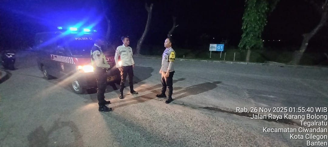 Cilegon – Dalam Rangka Pencegahan Street Crime dan Memelihara situasi keamanan dan ketertiban serta memberikan rasa aman dan nyaman di masyarakat,Salah satu upaya untuk mewujudkan hal tersebut sebagaimana yang dilakukan oleh Personil Polsek Ciwandan Polres Cilegon Polda Banten melaksanakan giat patroli blue light malam hari hingga menjelang pagi, Rabu (26/11/2025).