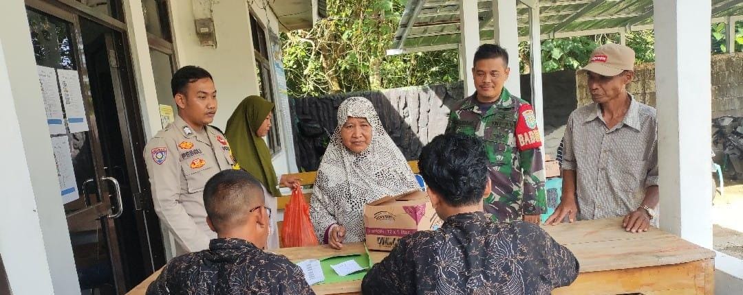 Bhabinkamtibmas Polsek Anyar Hadiri Penyaluran Program Bantuan Pangan Oleh Pos Indonesia