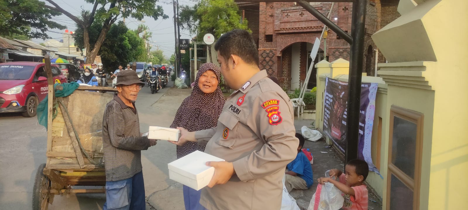 Implementasikan Junat Berkah,Polsek cibeber bagikan makan siang gratis