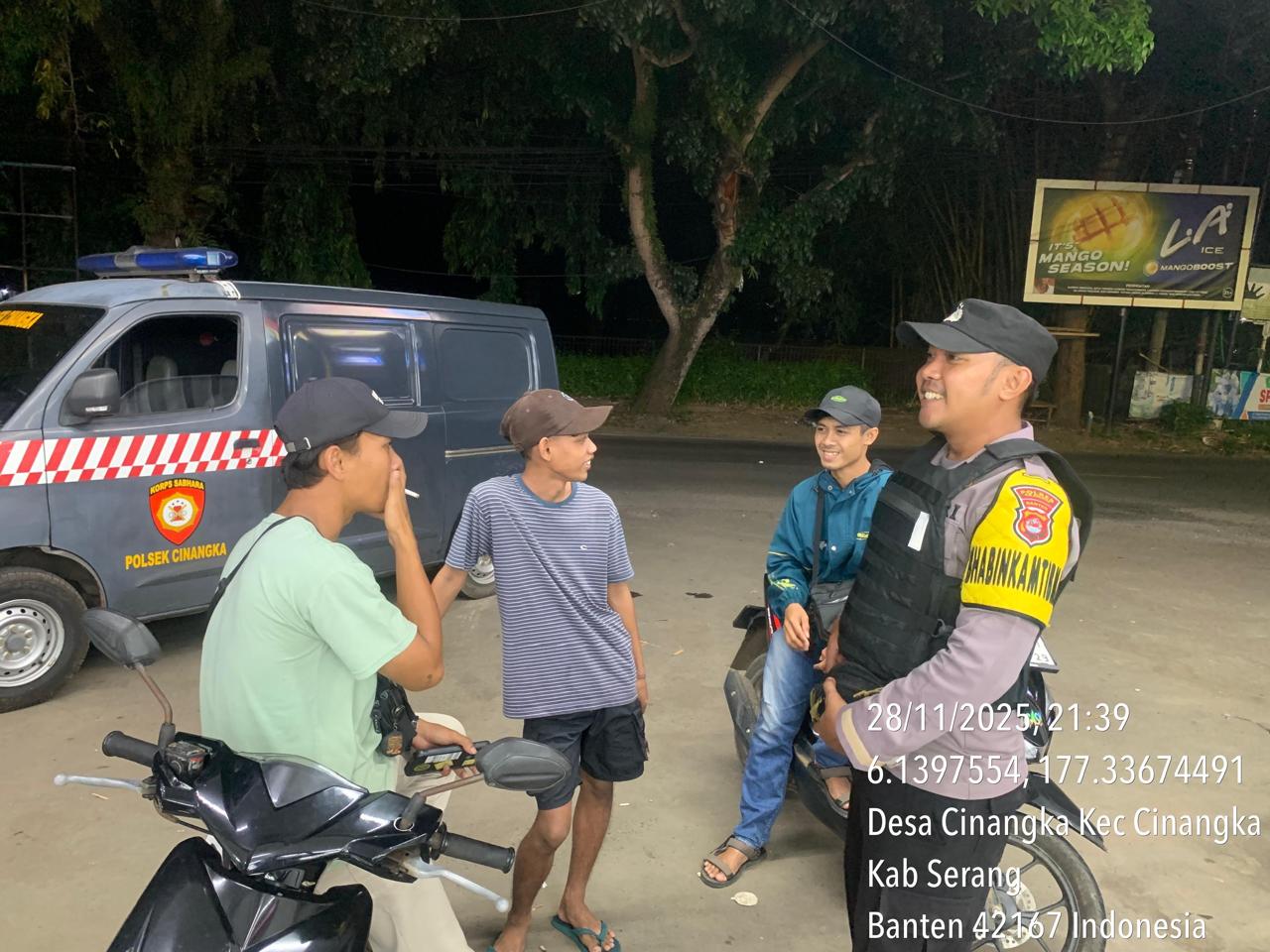 *Polres Cilegon* – Dalam Rangka Pencegahan Kejahatan Jalanan dan Memelihara situasi keamanan dan menjaga serta memberikan rasa aman dan nyaman di masyarakat,Salah satu upaya untuk mewujudkan hal tersebut sebagaimana yang dilakukan oleh Personil Polsek Cinangka Polres Cilegon Polda Banten melaksanakan giat patroli blue light malam hari hingga menjelang pagi, Sabtu (29/11/2025).