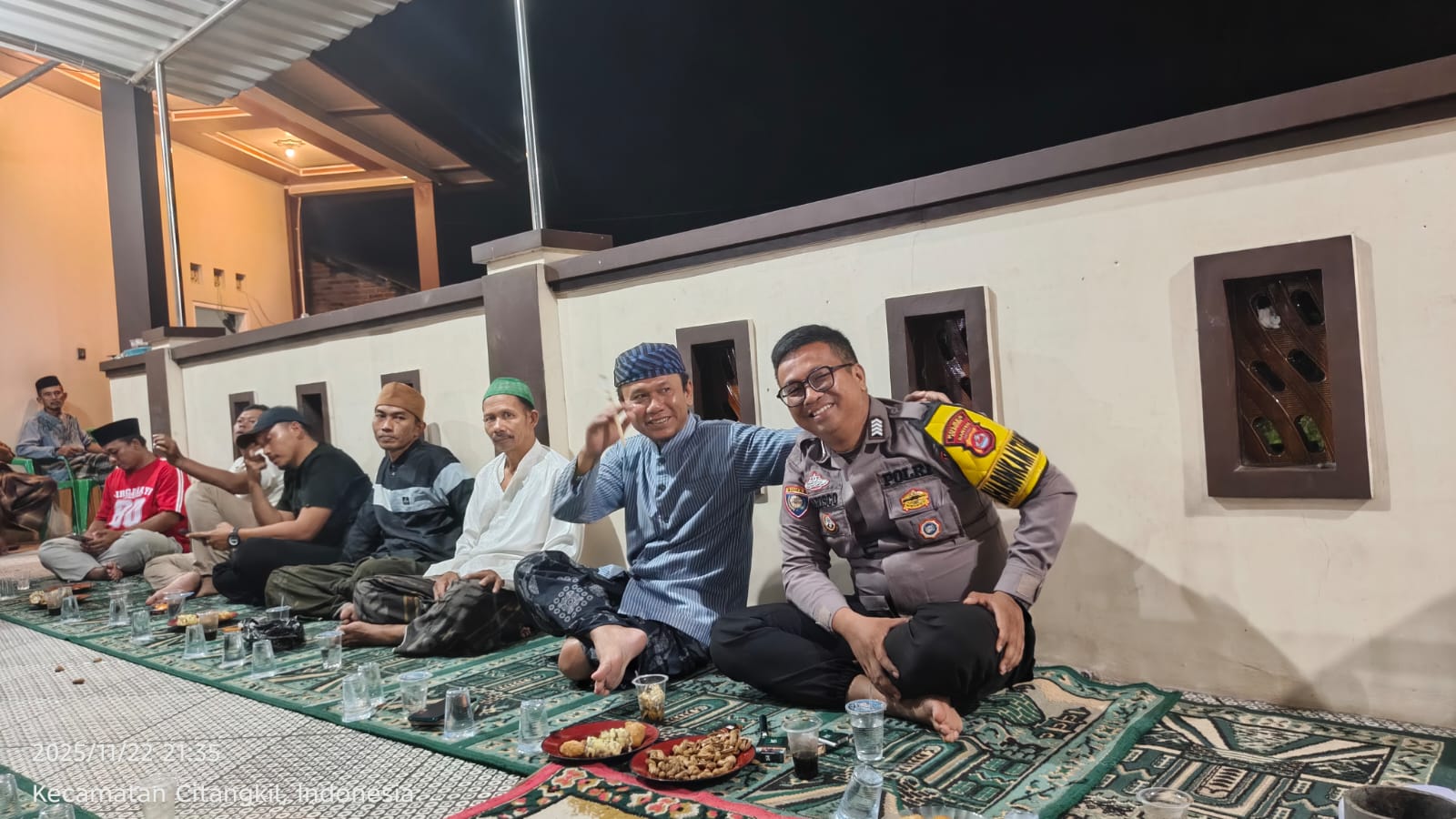 Cilegon - Bhabinkamtibmas Polsek Ciwandan Polres Cilegon Polda Banten menghadiri kegiatan Doa Bersama dan Dilanjutkan Pengajian Rutin dilingkungan Kelurahan Samangraya Kecamatan Citqngkil Kota Cilegon, Sabtu (29/11/2025).