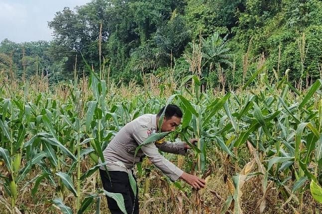 Polsek Anyar Lakukan Pengecekan Pada Kondisi Lahan Tanaman Jagung di Wilayah
