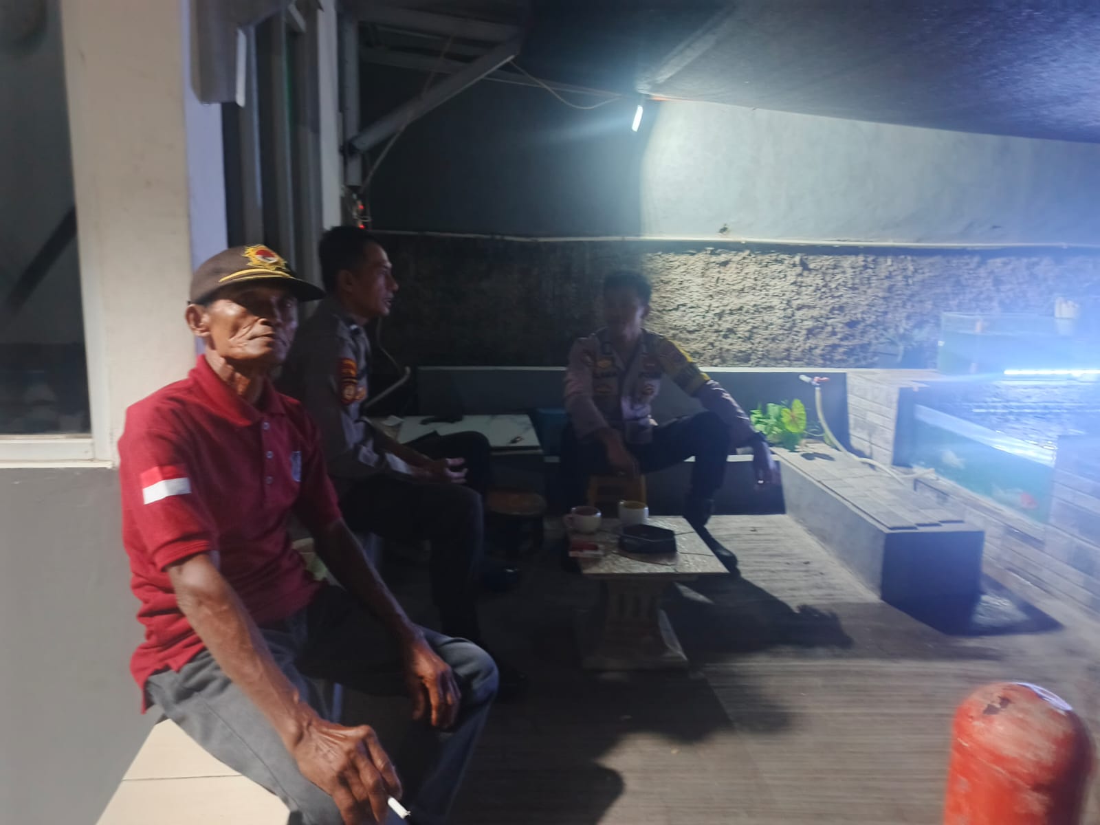 Anggota unit patroli samapta Polsek Cilegon sambangi ronda malam sampaikan pesan kamtibmas jaga keamanan