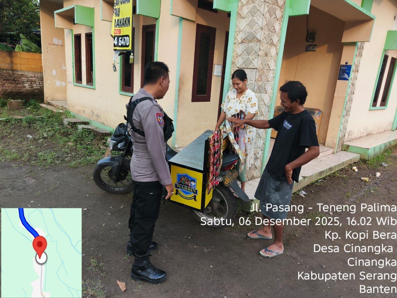 Polres Cilegon ~ Bhabinkamtibmas Polsek Cinangka Polres Cilegon Polda Banten Sambang dan silaturahmi dengan masyarakat merupakan salah satu tugas seorang bhabinkamtibmas untuk mengetahui situasi Kamtibmas Desa binaan dalam menjalin silaturahmi dengan Warga Ds Cinangka di Warung Bhabinkamtibmas, Sabtu (06/12/2025).