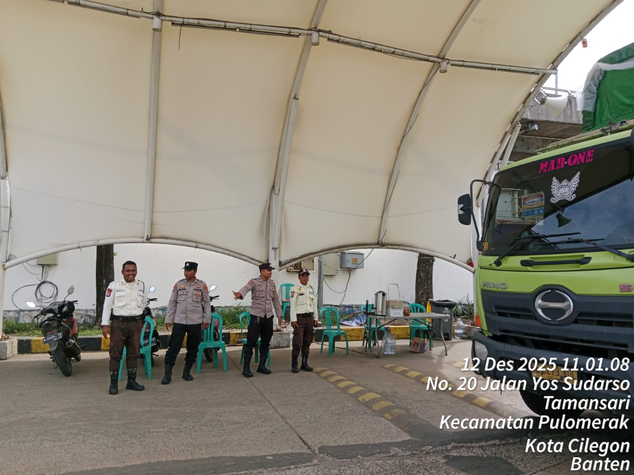Cilegon - Personel Polsek Kskp Merak Polres Cilegon Polda Banten melaksanakan sambang dan patroli kawasan pelabuhan merak dalam rangka menjaga Harkamtibmas di Kawasan Pelabuhan Merak, Jumat (12/12/2025).