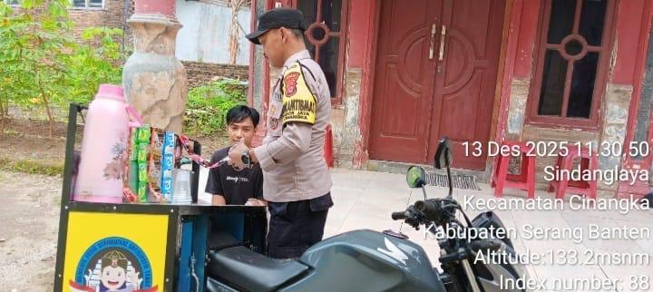 Polres Cilegon ~ Bhabinkamtibmas Polsek Cinangka Polres Cilegon Polda Banten Sambang dan silaturahmi dengan masyarakat merupakan salah satu tugas seorang bhabinkamtibmas untuk mengetahui situasi Kamtibmas Desa binaan dalam menjalin silaturahmi dengan Warga Ds Cinangka di Warung Bhabinkamtibmas, Sabtu (13/12/2025).