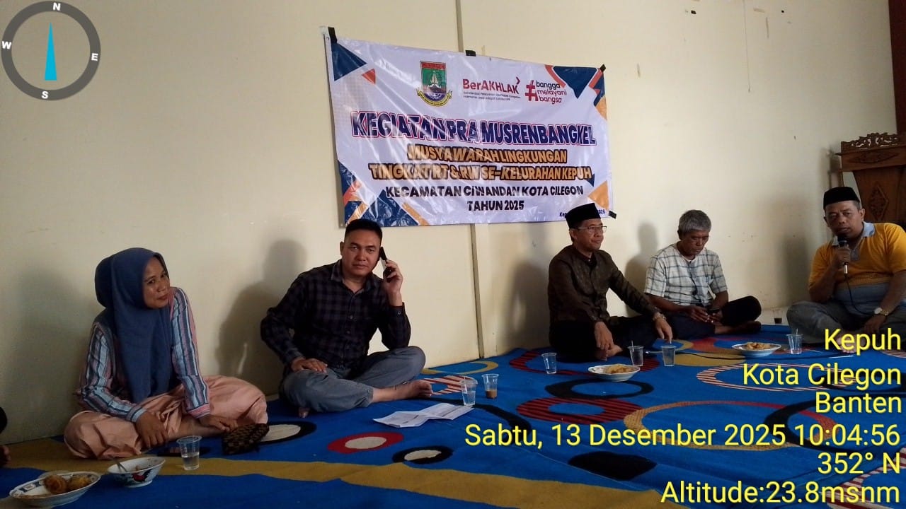 Cilegon – Bhabinkamtibmas Kelurahan Lebak Denok Polsek Ciwandan Polres Cilegon Polda Banten AIPDA Mere Erlansyah Menghadiri kegiatan Musyawarah rapat Musrenbangkel kelurahan Kepuh yang bertempat di Aula Kantor Kelurahan Kepuh kecamatan Ciwandan kota Cilegon, Sabtu (13/12/2025).
