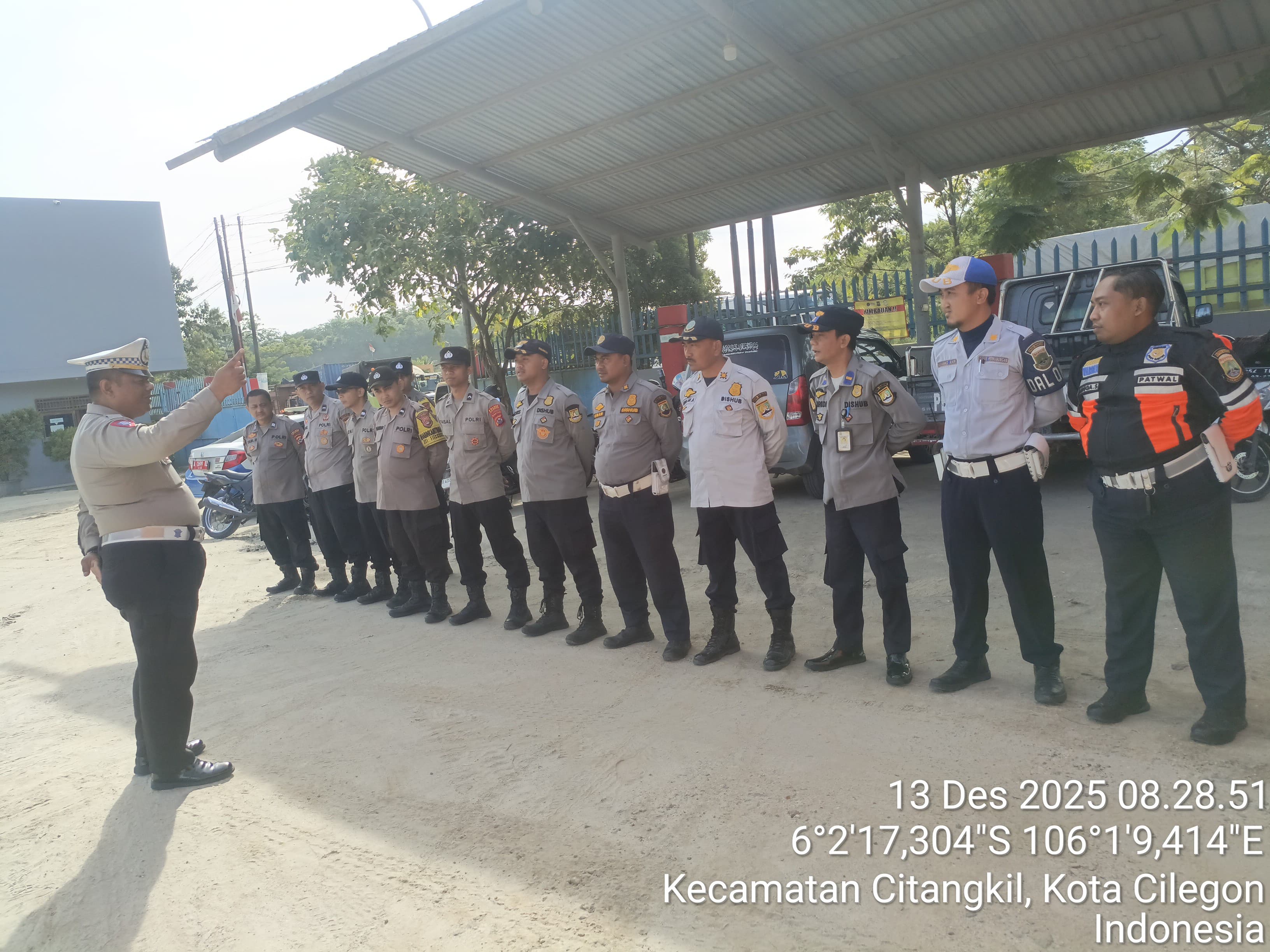Cilegon - Panit Lantas Polsek Ciwandan IPTU Deni Mulyana Bersama Personil Gabungan Polres Cilegon Polda Banten melaksanakan Kegiatan KRYD Dan Himbauan SK Gubernur Dan monitoring stokfile pasir Didaerah hukum Polsek Ciwandan, Sabtu (13/12/2025).