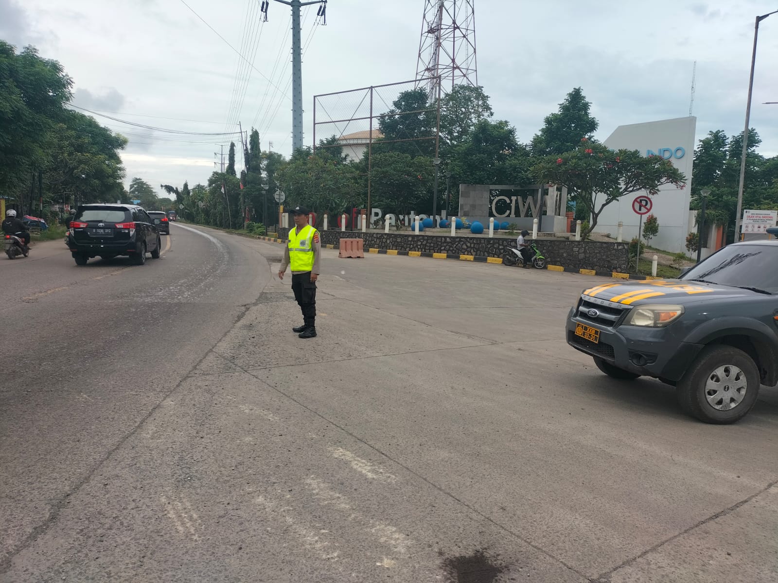 Kapolres Cilegon AKBP Martua Raja Taripar Laut Silitonga Melalui Kapolsek Kskp Banten Polres Cilegon AKP Fredo Leonard menyampaikan Laksanakan Pengamanan Sesuai plotinganya lakukan Pengaturan Supaya Arus Lalu Lintas tetap Berjalan lancar dan Pastikan tidak ada hambatan.