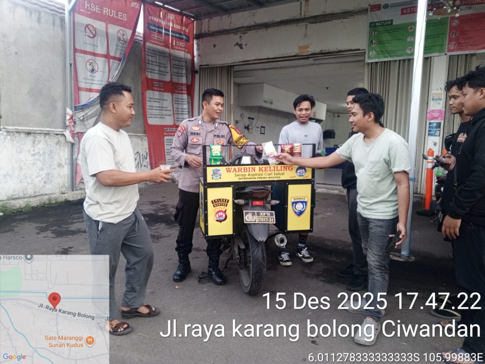 Cilegon - Bhabinkamtibmas Polsek Ciwandan Polres Cilegon Polda Banten melaksanakan kegiatan WARBIN (warung Blnhabinkamtibmas) di Lingkungan Binaan, Senin (15/12/2025).