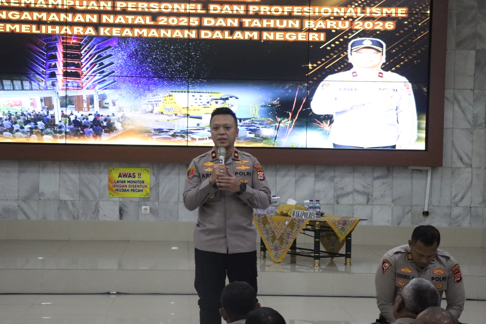 Cilegon – Polres Cilegon Polda Banten menggelar Latihan Pra Operasi (Lat Pra Ops) Lilin Maung Tahun 2025 sebagai bentuk kesiapan pengamanan perayaan Natal 2025 dan Tahun Baru 2026. Kegiatan berlangsung bertempat di Aula Wicaksana Laghawa Polres Cilegon. Rabu, 17/12/2025