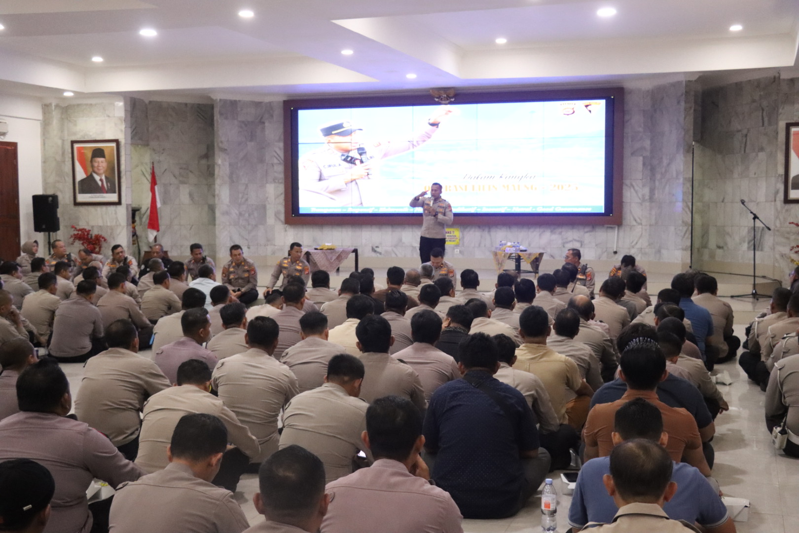 Cilegon – Polres Cilegon Polda Banten menggelar Latihan Pra Operasi (Lat Pra Ops) Lilin Maung Tahun 2025 sebagai bentuk kesiapan pengamanan perayaan Natal 2025 dan Tahun Baru 2026. Kegiatan berlangsung bertempat di Aula Wicaksana Laghawa Polres Cilegon. Rabu, 17/12/2025