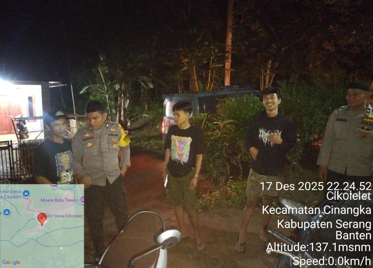 Seperti biasanya di jam – jam rawan anggota Polsek Cinangka Polres Cilegon Polda Banten melakukan patroli kewilayahan dengan sasaran tempat-tempat yang dianggap rawan tindak kejahatan, untuk kali ini anggota patroli Polsek Cinangka berpatroli menyasar ke Pemukiman warga Serta di jalan-jalan yang rawan di Cinangka , Kab Serang.