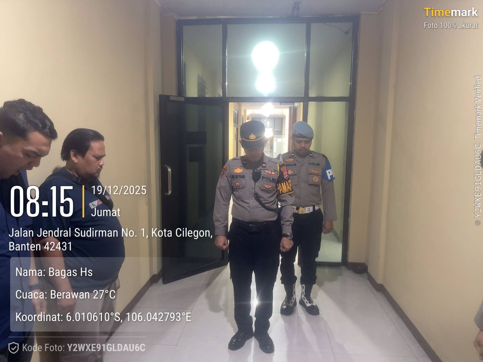 Cilegon, personel Satreskrim Polres Cilegon Polda Banten melaksanakan piket di penjagaan pintu masuk Polres Cilegon Polda Banten untuk memastikan mako Polres Cilegon dalam keadaan aman dan nyaman dalam melayani Masyarakat. Jumat (19 /12/2025).