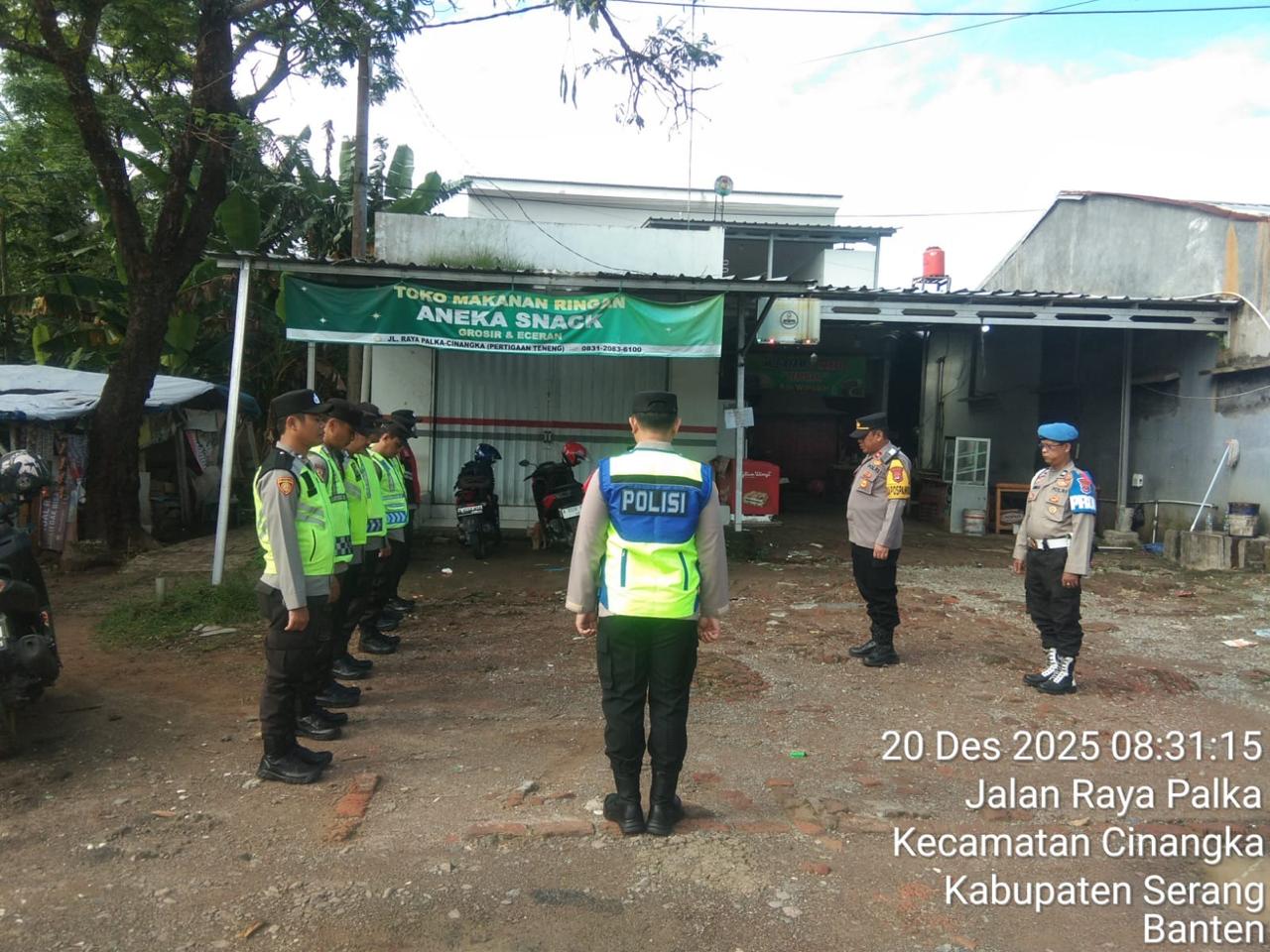 *POLRES CILEGON* Polda Banten. Menjaga kegiatan dan memastikan Aman Polsek Cinangka Polres Cilegon terjunkan Petugas menjaga pengamanan kegiatan PAM Natal dan tahun baru di Pospam Cinangka Kecamatan Cinangka. Sabtu (20/12/2025).