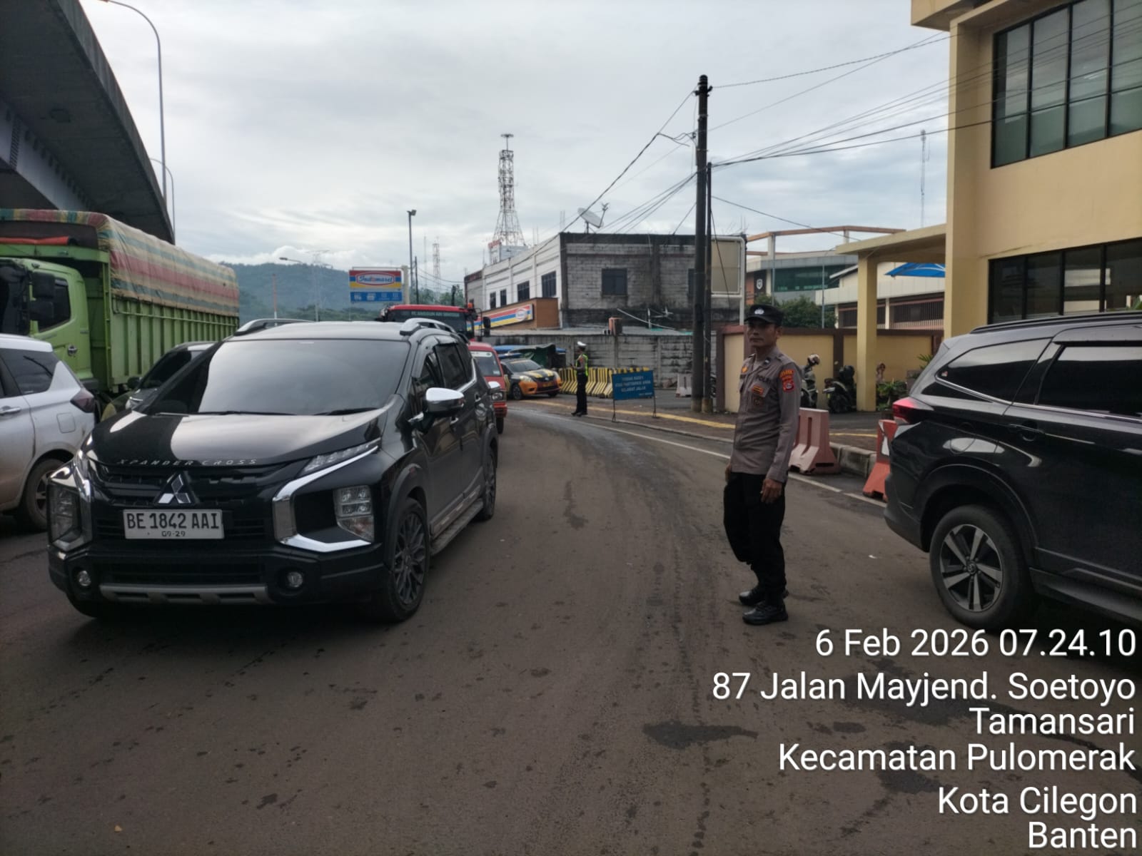 Personel Polsek Kskp Merak Laksanakan Pengaturan Antrian Kendaraan