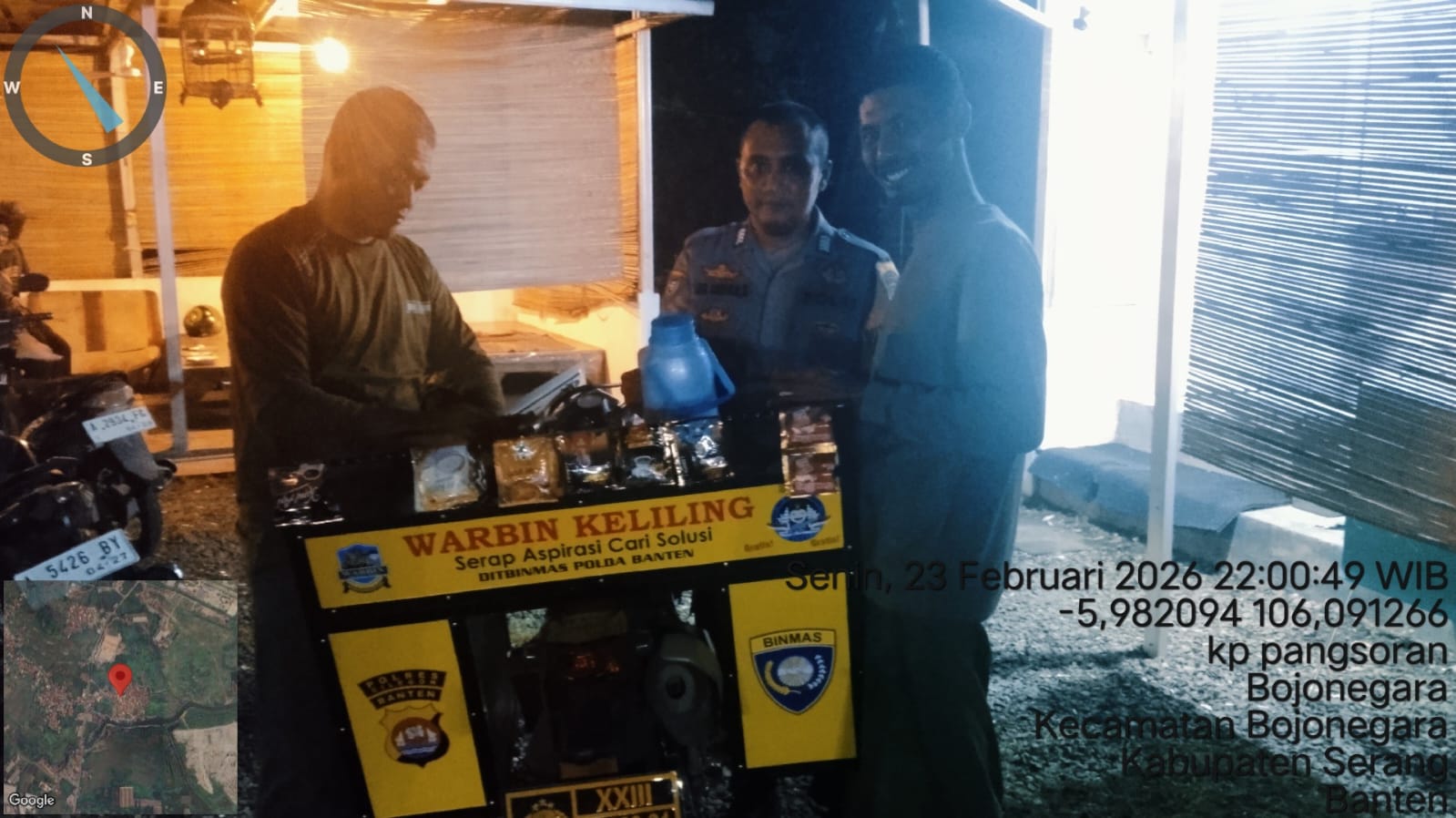 Kapolsek Ciwandan dan Bhabinkamtibmas Ciwandan melaksanakan kegiatan patroli untuk menjaga situasi kamtibmas yang aman dan kondusif. Kegiatan patroli ini dilakukan untuk ¹:
