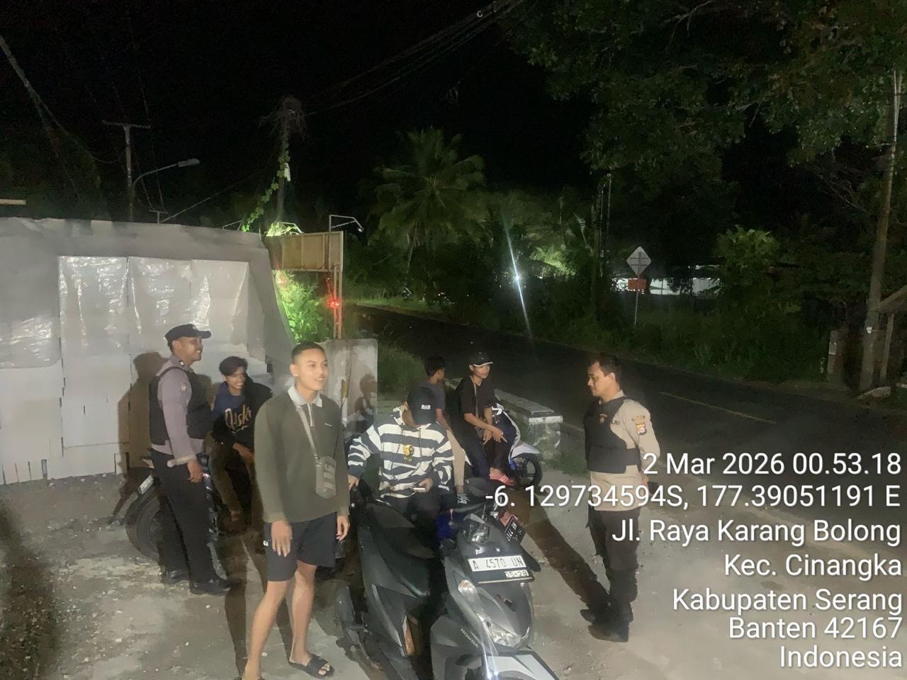 *Cilegon* – Dalam Rangka Pencegahan Kejahatan Jalanan dan Memelihara situasi keamanan dan menjaga serta memberikan rasa aman dan nyaman di masyarakat,Salah satu upaya untuk mewujudkan hal tersebut sebagaimana yang dilakukan oleh Personil Polsek Cinangka Polres Cilegon Polda Banten melaksanakan giat patroli blue light malam hari hingga menjelang pagi, Senin (02/03/2026).