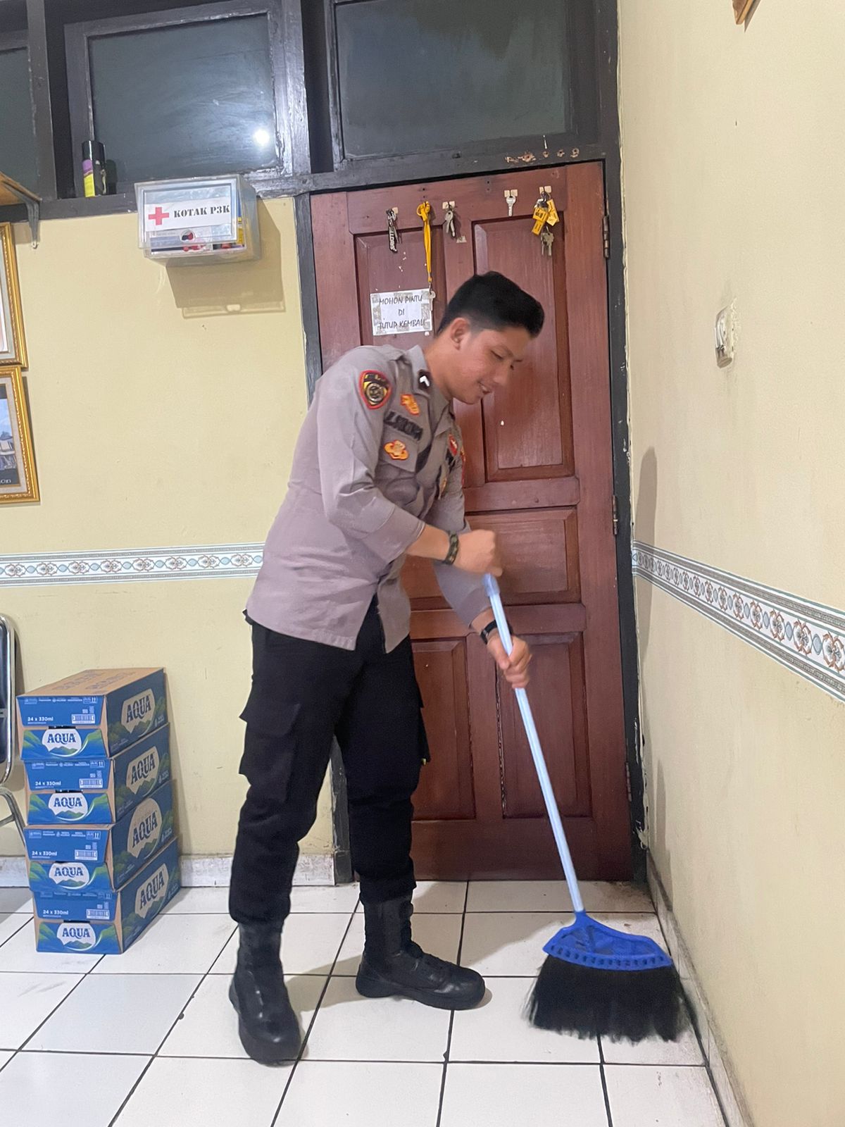 Anggota Bag SDM Polres Cilegon, selalu melakukan kegiatan membersihkan ruanngan kerja secara rutin.