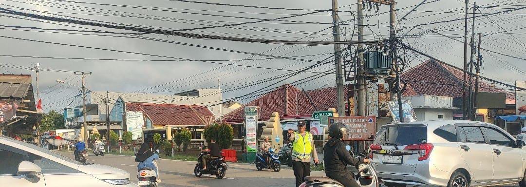 Personel Polsek Anyar Pengaturan Lalu Lintas Agar Jalur Lancar dan Aman