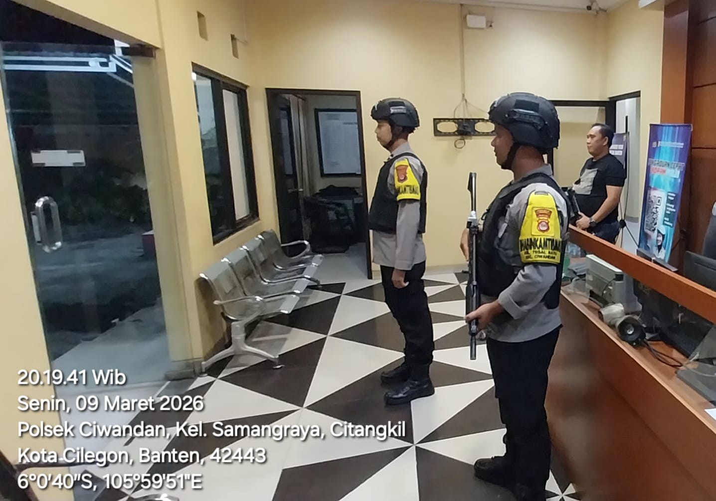 Cilegon - Guna mengantisipasi adanya potensi ancaman dan gangguan terhadap keamanan kantor maupun keselamatan personel piket jaga, Personil Polsek Ciwandan Polres Cilegon Polda Banten selalu tingkatkan kesiapsiagaan dan kewaspadaan dengan rutin menggelar kegiatan Sistem Pengamanan Mako (Sispam Mako), Selasa (10/03/2026).
