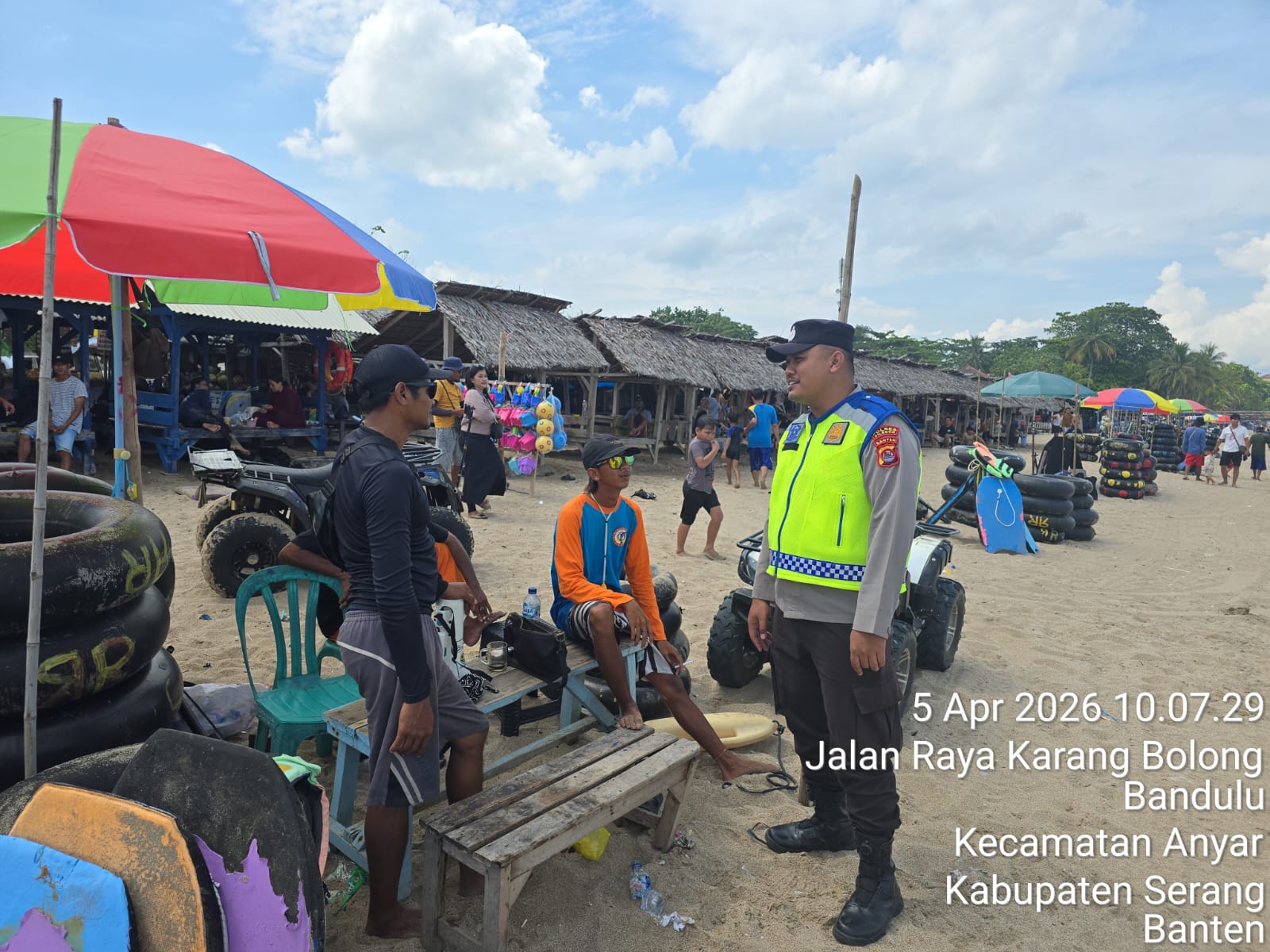 Pastikan Keamanan dan Keselamatan, Bhabinkamtibmas Polsek Anyer Polres Cilegon berikan himbauan kamtibmas kepada pengelola wisata Pantai.