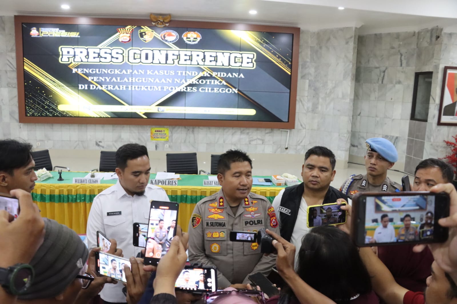Kapolres Cilegon AKBP Dr. Martua Raja Taripar Laut Silitonga menyampaikan bahwa dari total tersangka, 9 orang berperan sebagai pengedar dan 3 orang sebagai perantara dalam transaksi narkotika.