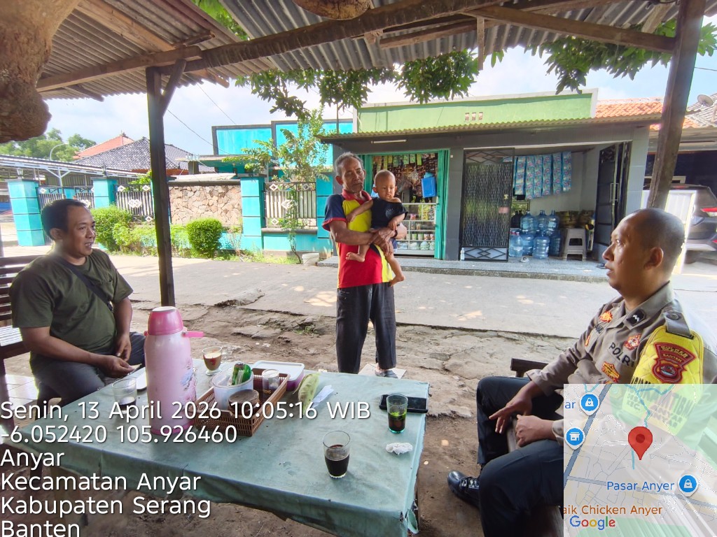 Cilegon - Polres Cilegon Polda Banten. Bhabinkamtibmas Desa Anyer Kec. Anyer AIPDA Isvana memberikan Rasa aman dilingkungan dengan melaksanakan patroli dialogis dan menyapa warganya serta menyampaikan himbauan kamtibmas di Kp. Paku Desa Anyar Kec. Anyar, Kab Serang. Senin (13/04/2026).