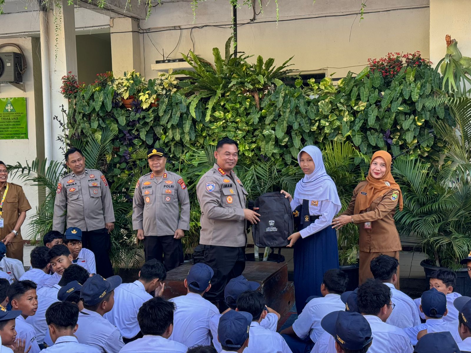 Kapolres Cilegon Polda Banten AKBP Martua Raja Taripar Laut Silitonga Melalui Kasi Humas Polres Cilegon AKP Sigit Dermawan menyampaikan bahwa kegiatan ini merupakan wujud kepedulian Polri dibidang Pendidikan.