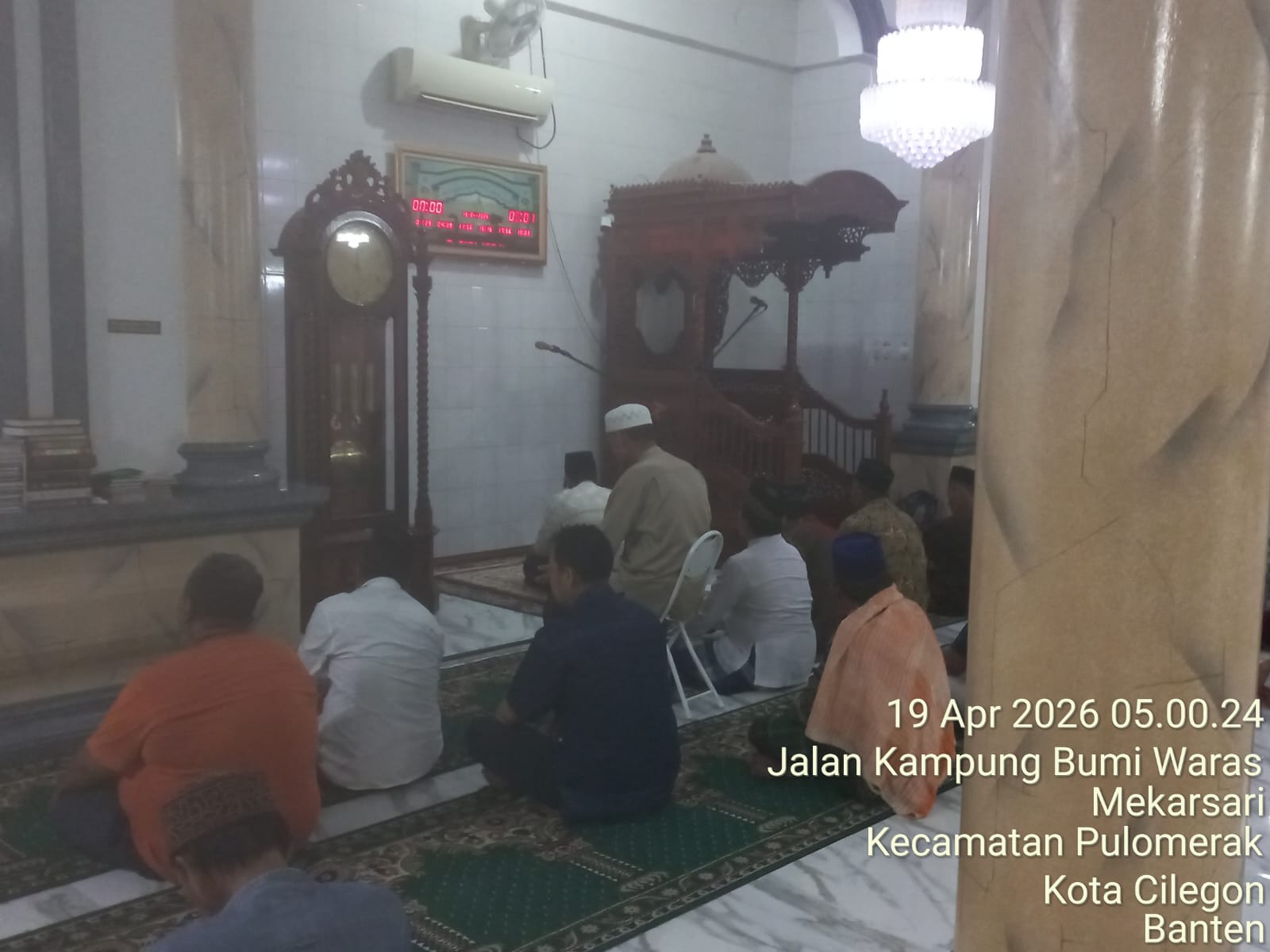 Bhabinkamtibmas Polsek KSKP Merak Polres Cilegon melaksanakan Shalat Subuh Berjamaah dalam rangka Program Commander Wish Kapolda Banten (SUBLING) - SUBUH KELILING. Minggu, 19/04/2026